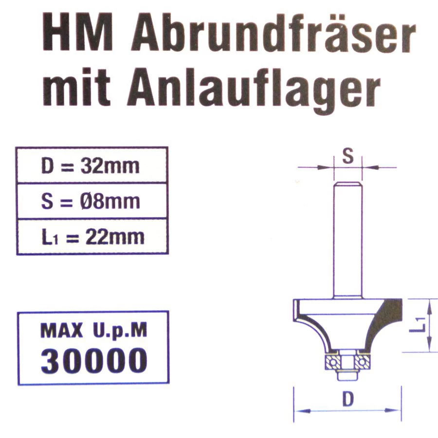 - 1 x Drillcraft HM-Abrundfräser 32 mm