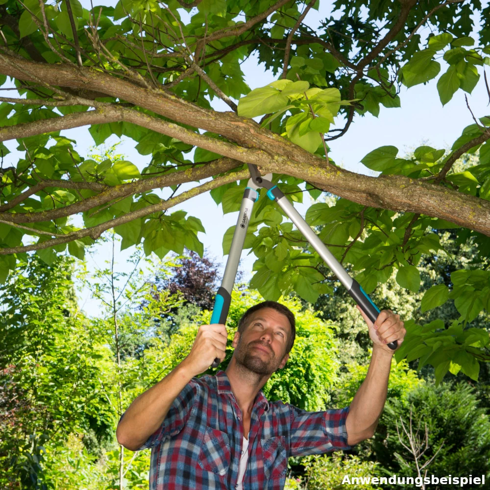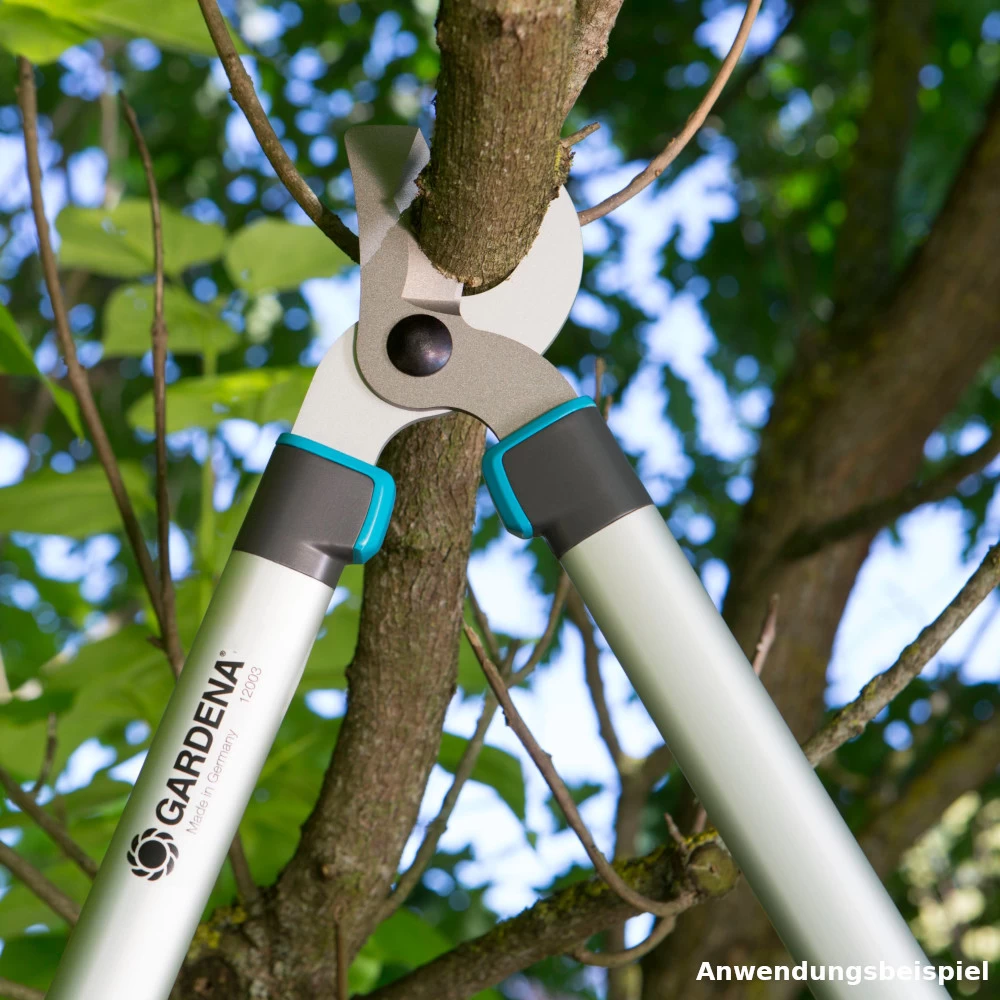 Die GARDENA EasyCut 680 B Astschere ist ein Klassiker unter den Bypass-Astscheren für das Schneiden von frischem Holz, bis zu einem Durchmesser von 42 mm. Durch ihr geringes Gewicht, dank Aluminiumhebelarmen und der ausgezeichneten Hebelwirkung, ist der Kraftaufwand bei den Schnittarbeiten gering. Ergonomisch geformte Griffstücke mit Weichkomponenten bieten die nötige Rutschfestigkeit und leichte Handhabung. Anschlagpuffer aus einem speziellen Kunststoff entlasten zusätzlich die Gelenke. Präzisionsgeschliffene Klingen mit Antihaftbeschichtung gewährleisten einen präzisen und pflanzenschonenden Schnitt. GARDENA garantiert höchste Qualität mit einer Garantie von 25 Jahren und dem Siegel “Made in Germany“.