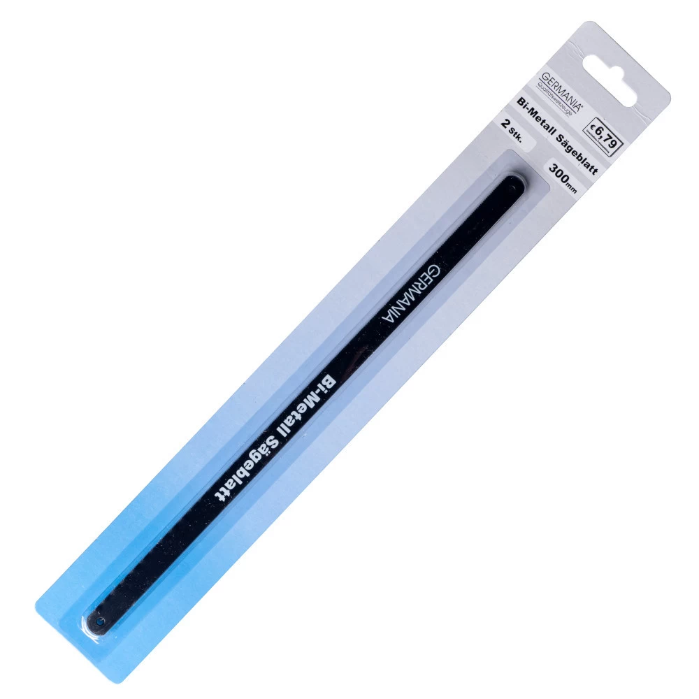 2 Bi-Metall Sägeblätter 300 mm von GERMANIA im Set. Die Sägeblätter aus Bi-Metall sind für kleine Bogensägen geeignet und sorgen für ein einfaches und reibungsloses Sägen mit guter Schnittqulität.