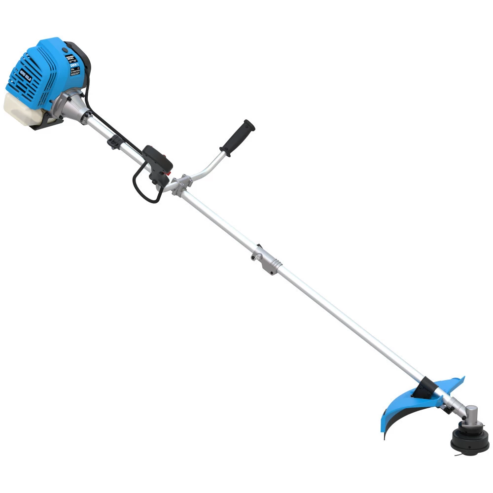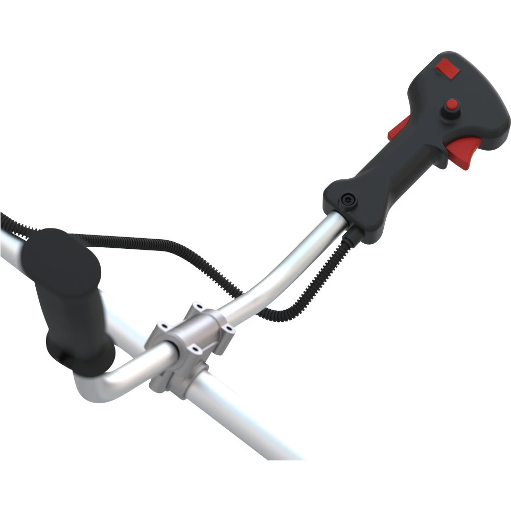 Zur Ausstattung der Motorsense gehören ein Wirbelblatt mit 8 Zähnen, ein Sternblatt mit 4 Zähnen, eine Fadenspule und eine starre Welle. Das komfortable Tragegurtsystem rundet den sehr guten Gesamteindruck ab.