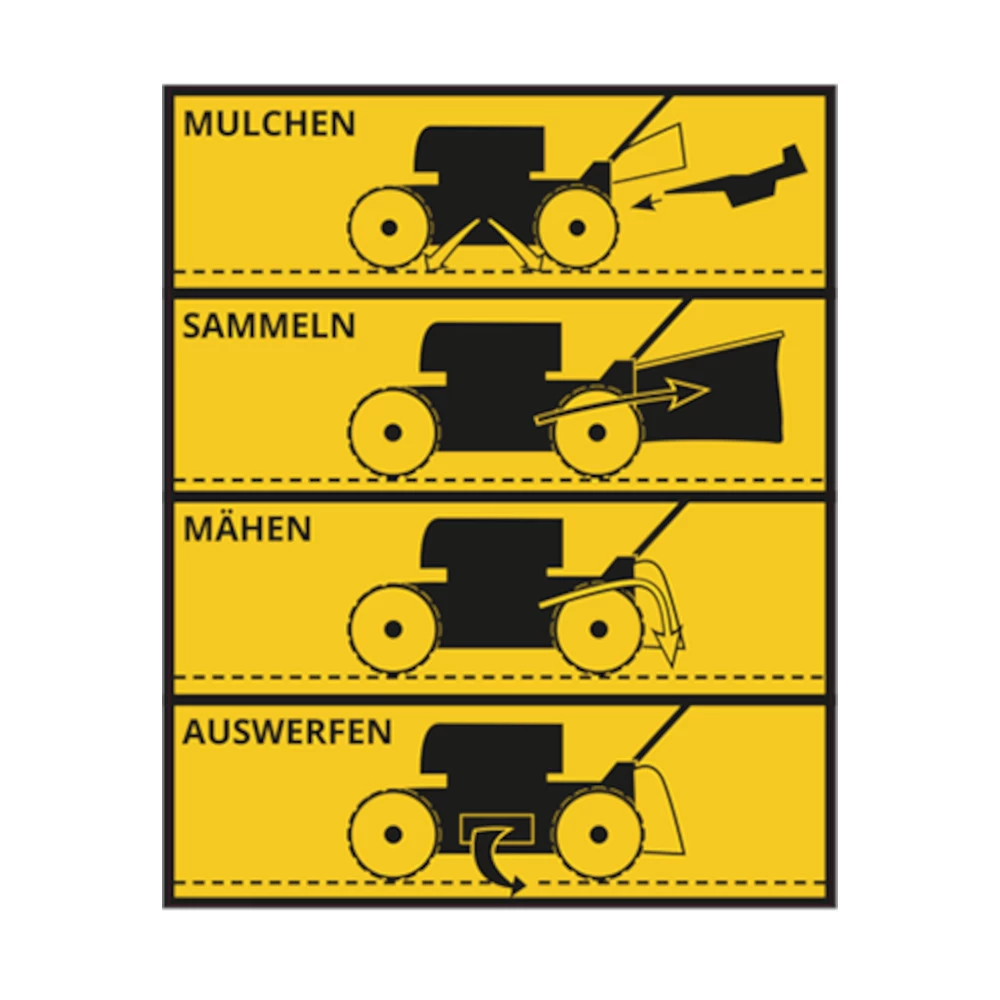 Mit dem Hybrid -Rasenmäher ECO WHEELER 464.2 R LI-ES mit robustem Stahlgehäuse von Güde wird das Mähen von Rasenflächen von ca. 1400 m² zum Kinderspiel. Dank des zuschaltbaren Hinterradantriebes sind auch Hanglagen kinderleicht zu bewältigen. Sein ergonomisch geformter, klappbarer und 2-fach höhenverstellbarer Fahrgriff erleichtert die Handhabung des Rasenmähers. Die 6-fache zentrale Schnitthöhenverstellung, der leistungsstarke 3,4 PS-Motor, das Mulchkit, der Seitenauswurf und der Grasfangkorb mit ca. 50 Litern Fassungsvermögen runden den Rasenmäher ab. Der dafür benötigte Akku und das Ladekabel sind im Lieferumfang enthalten.