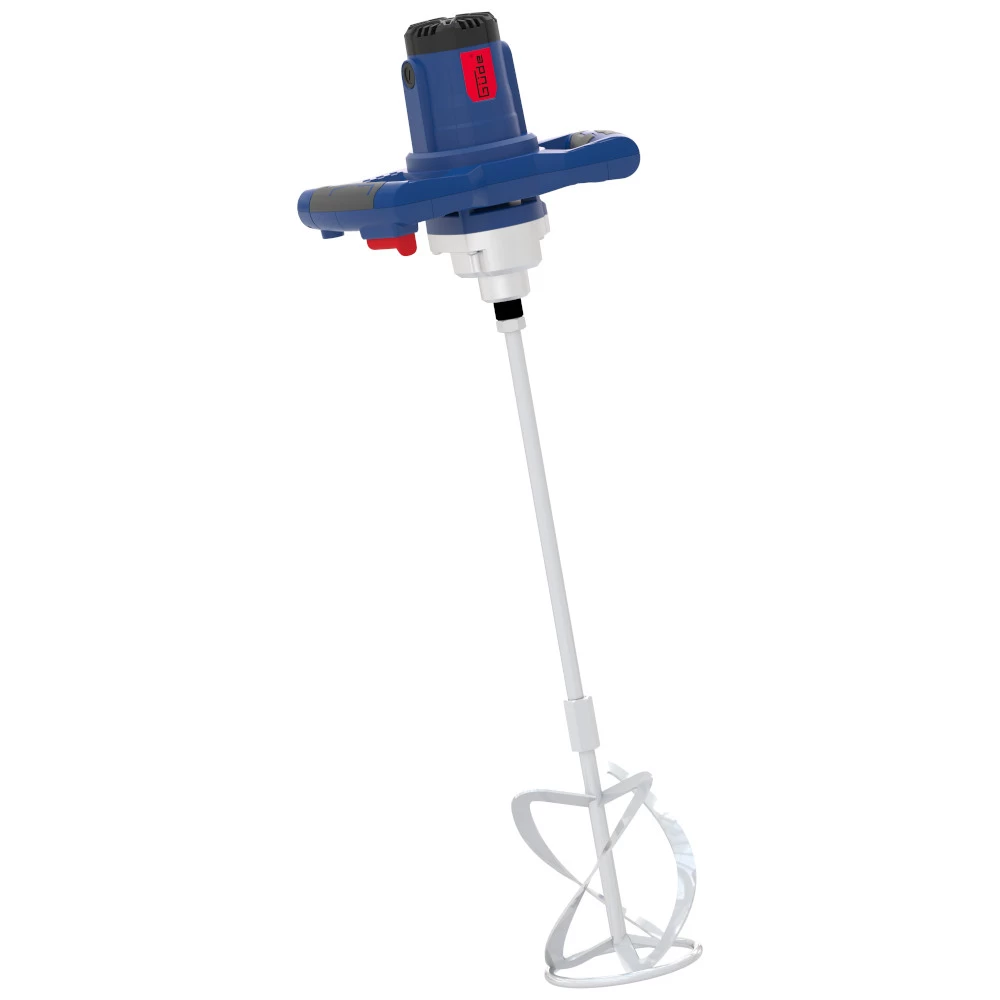 Der leistungsstarke Rührwerk GRW1414.1 von Güde eignet sich mit seinen 1400 W zum Anrühren von Putz, Mörtel, Kleber oder Farbe. Hierbei ist der Rührer auch für das Aufrühren und Anmischen von pulverförmigen Bauwerkstoffen verwendbar. Sein ergonomisches Metallgetriebegehäuse und Softgriff mit elektronischer Drehzahlregulierung sorgt für einen angenehmen Arbeitskomfort. Das Rührgerät ist durch die flexiblen Einsatzmöglichkeiten ein passender Helfer bei Renovierungsarbeiten. Ein Rechtsgewendelter-Rührer und ein ca. 3 m langes Stromkabel sind im Lieferumfang enthalten.