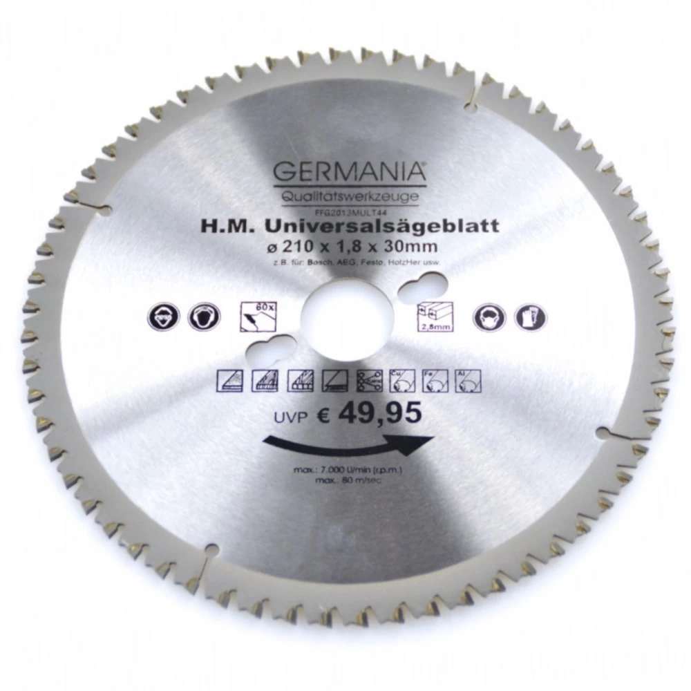 HM Multi Sägeblatt 210×30 mm mit 60 Zähnen universal für Alu, Holz, Kunststoff