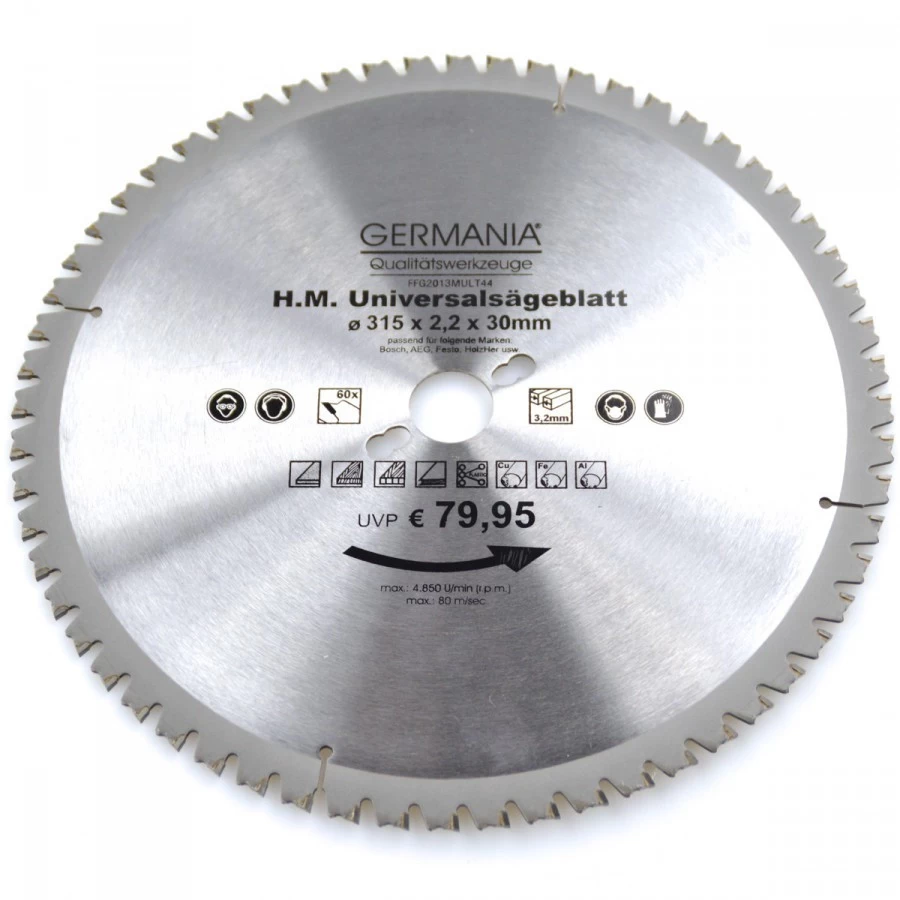 HM Multi Sägeblatt 315x30mm 60Zähne Universal Alu Holz Kunststoff Kreissägeblatt