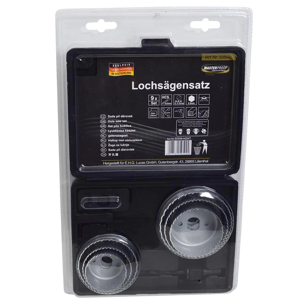 - 1 x Lochsägensatz 9-teilig 50-60-65-72-75-86 mm