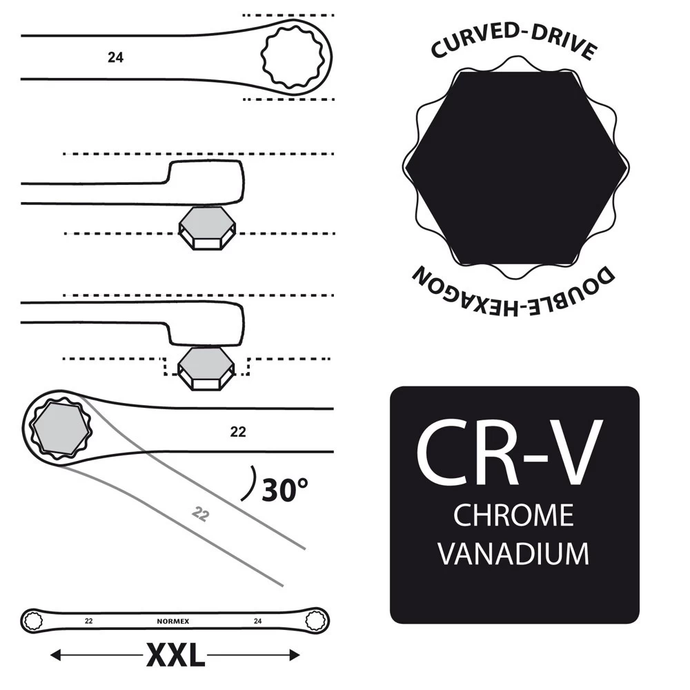 Normex Doppel Ringschlüsselsatz 6tlg. XXL gerade 10-24mm CV Doppelringschlüssel