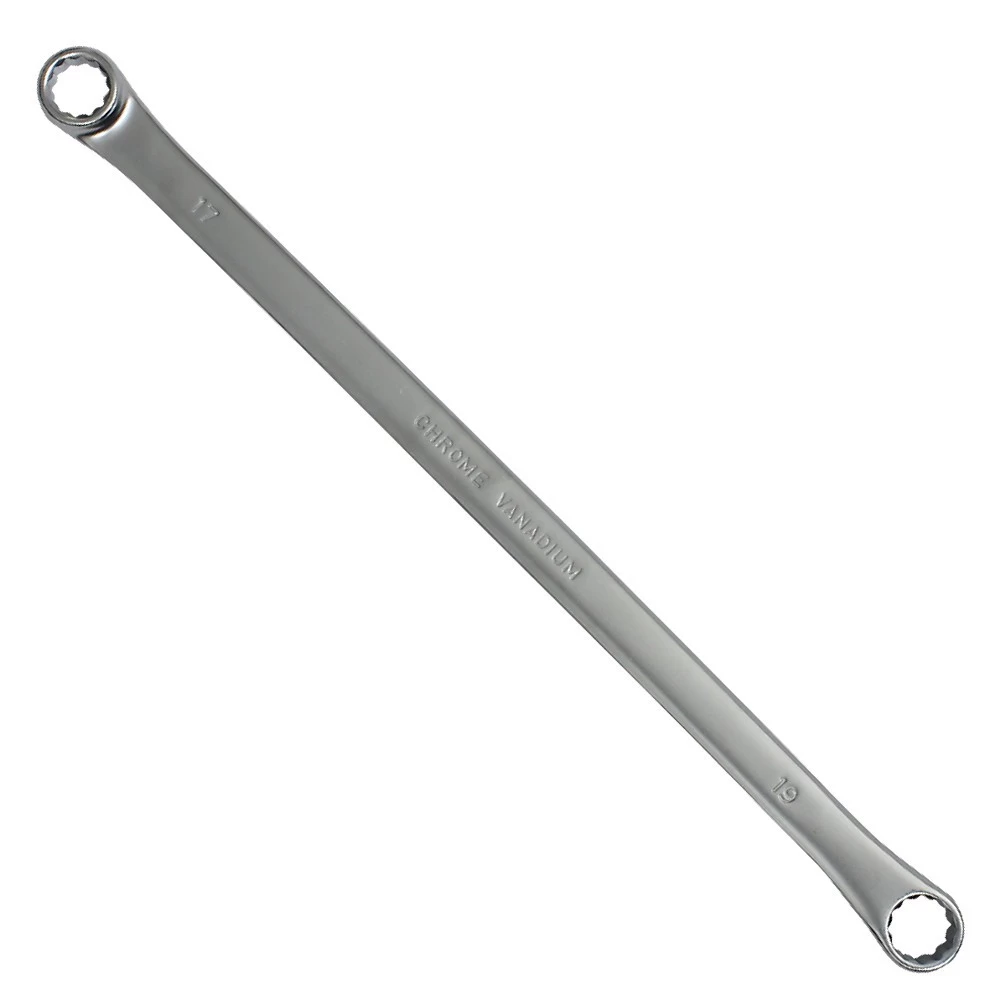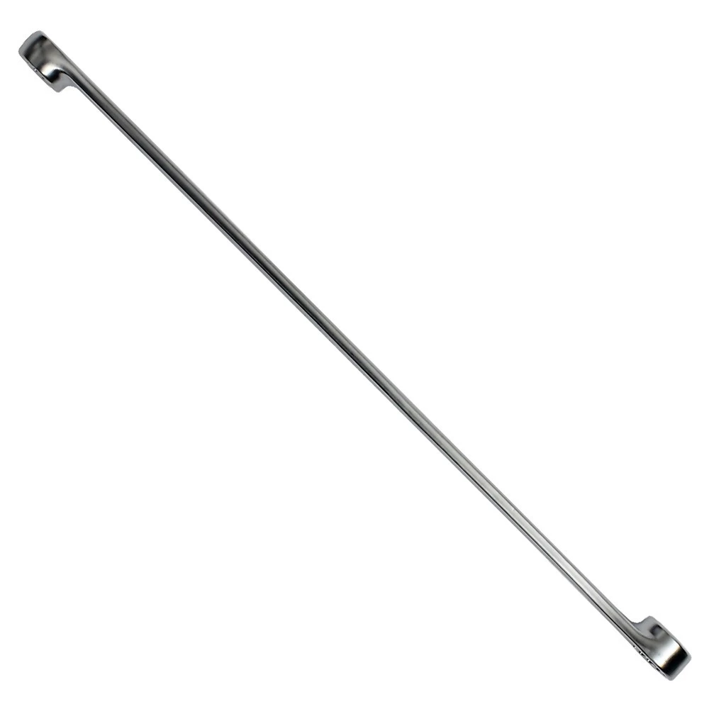 Hochwertiger, extra langer Doppelringschlüssel-Satz bestehend aus 6 Doppelringschlüssel für den professionellen Einsatz. Die Doppelringschlüssel sind besonders schlank gehalten, ideal für den Einsatz in der KFZ-Reparatur-Branche, besonders bei schwer zugänglichen Stellen (z.B. bei Arbeiten im Motorraum oder an der Lenkung). Durch die Überlänge wird eine höhere Kraftübertragung erreicht und eine optimale Reichweite wird ermöglicht. Das 12-Kant-Spezialprofil ermöglicht ein kraftvolles Arbeiten und vermeidet ein Abrunden des Schraubenkopfes.