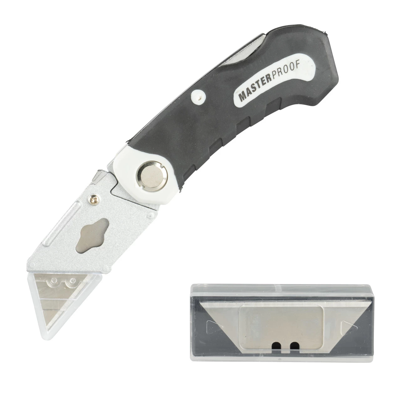 Das praktische Klappmesser eignet sich ideal zum Schneiden von Teppichen, Leder oder Stoffen. Dank seines gummierten Griffes liegt das Teppichmesser gut in der Hand und ist ein zuverlässiger Helfer bei sämtlichen Renovierungsarbeiten. Bei Nichtgebrauch lässt sich die Klinge sicher im Griff des Klappmessers verstauen, um Verletzungen zu verhindern. Inklusive 5 Klingen.