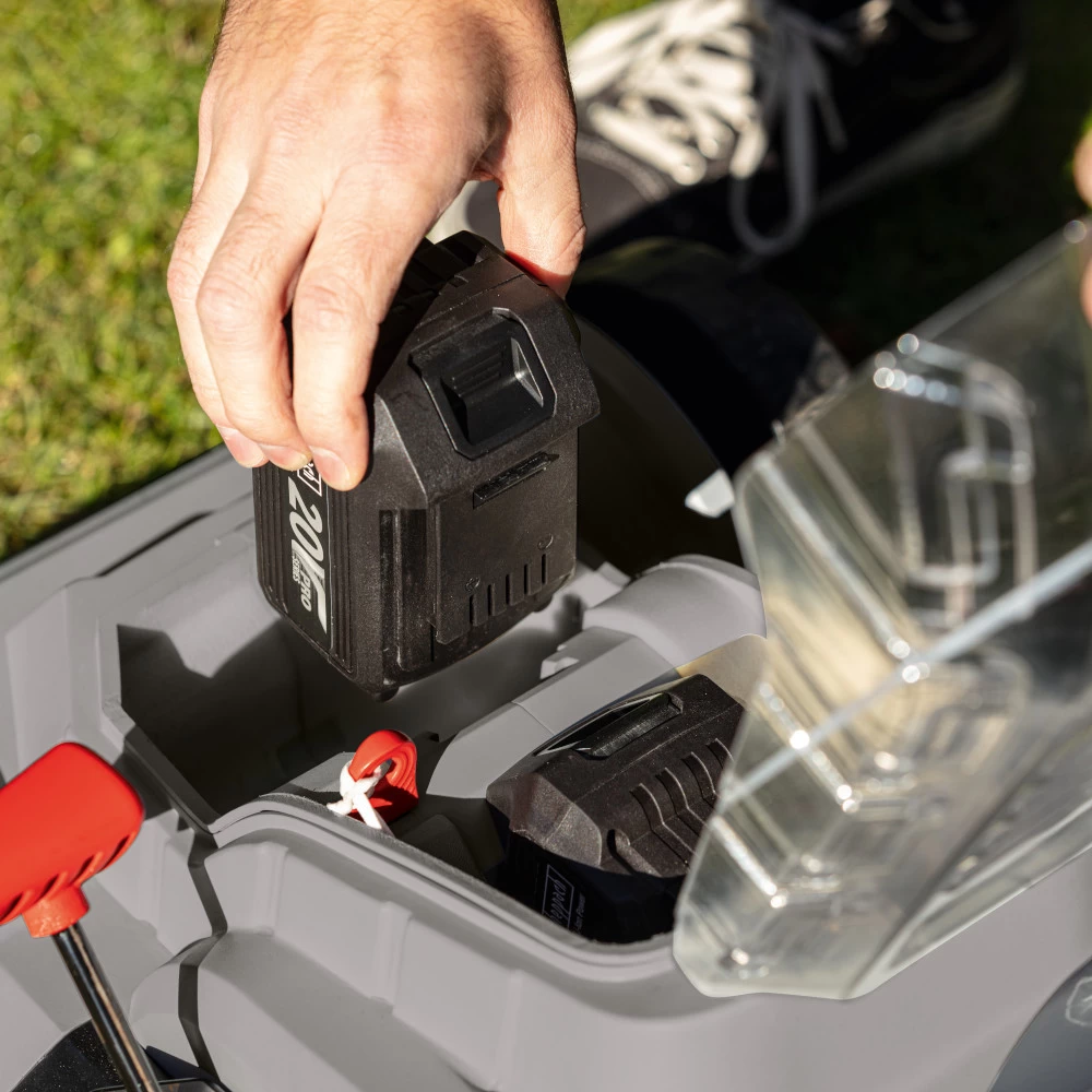 - leistungsstarker Akku-Rasenmäher mit starkem 2 x 20 V Motor