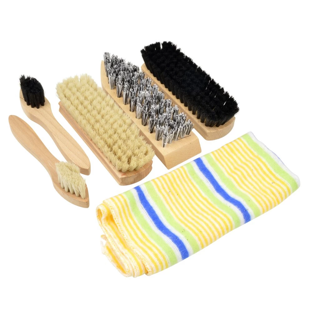 Schuhputz-Set 6-teilig aus Holz mit Kunststoffborsten