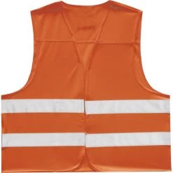 Sicherheits-Warnweste aus Polyester in fluoreszierendem Orange. Die hochsichtbare Warnweste sichert den Träger bei einer Panne oder Unfall. Sie verfügt rundum über 2 reflektierende Streifen für eine bessere Sichtbarkeit bei Nacht.